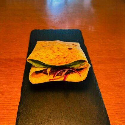 Состав: лепешка, помидор, куриная котлета, сыр чеддер, лист салата, соус гриль