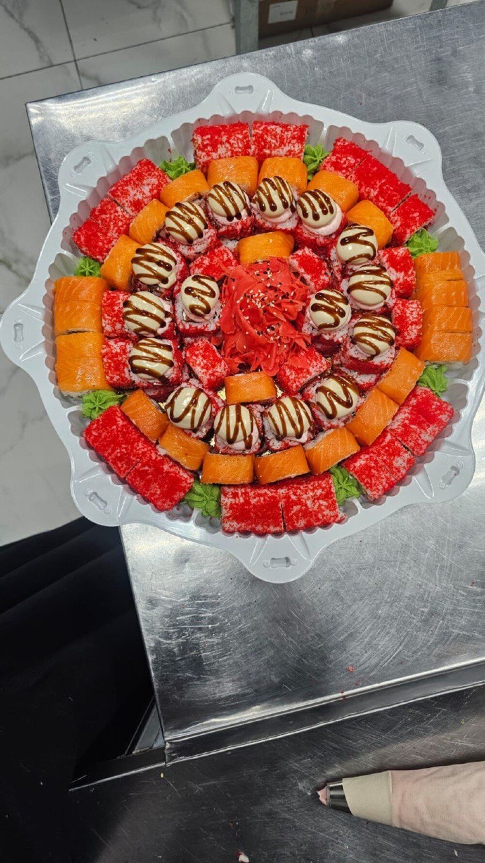 Состав: Филадельфия лосось 3 порц., Калифорниия с крабом 3 порц., Бешеный лосось 2 порц.
