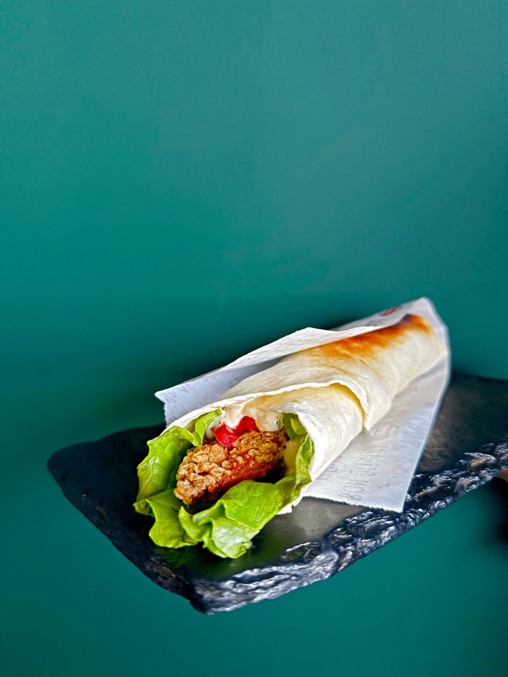 Состав: стрипсы, помидор, пекинка, лепешка, соус