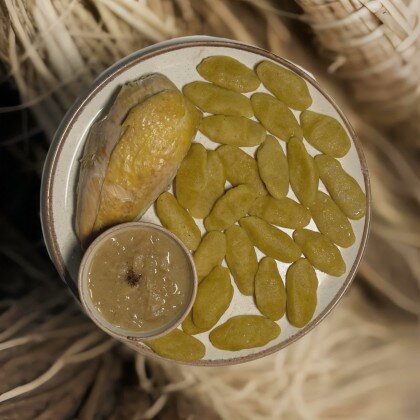 Ахьар-галнаш (кукурузные галушки с курицей) окорочок