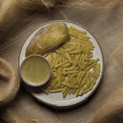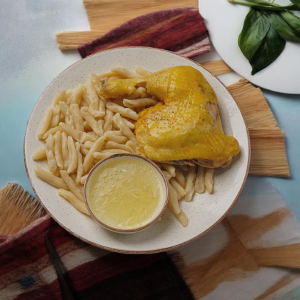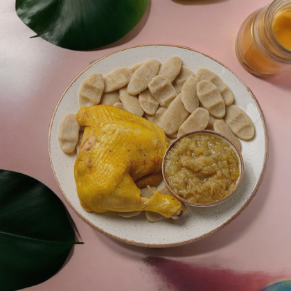 Национальное блюдо с кукурузными галушками и нежным мясом курицы, вкусное и питательное угощение. Состав: грудка куриная, галушки кукурузные, бульон, соус