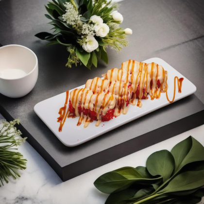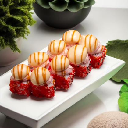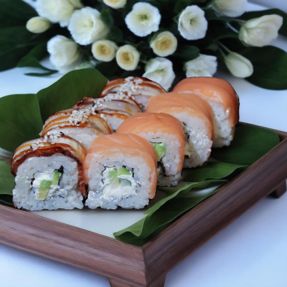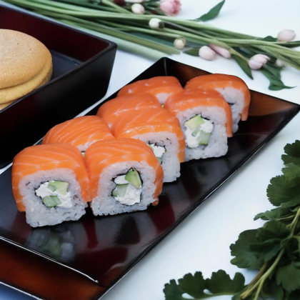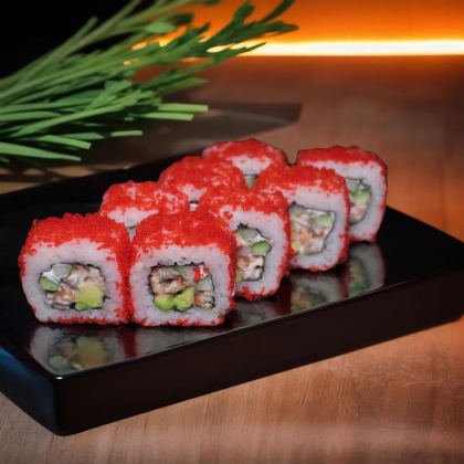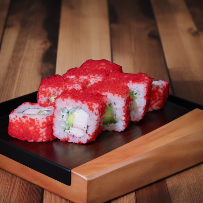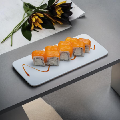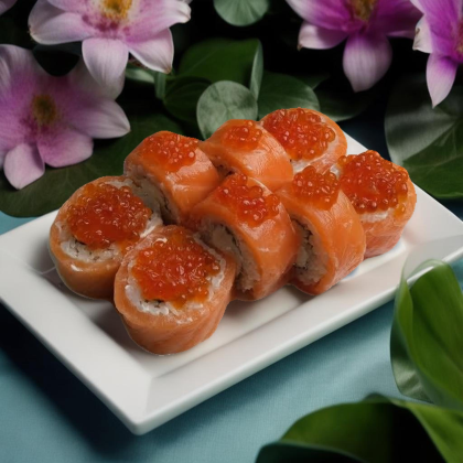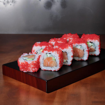 Королевский вкус, достойный императора. Состав: лосось, рис, икра лосося, сыр творожный.