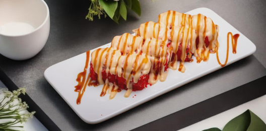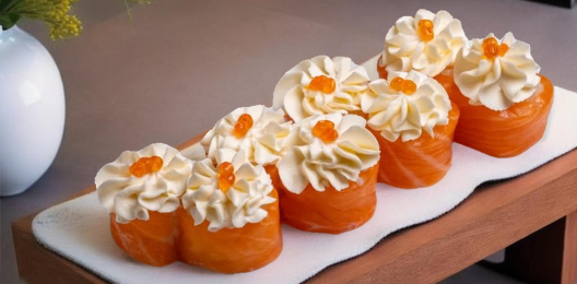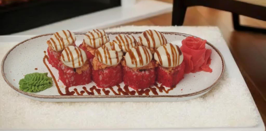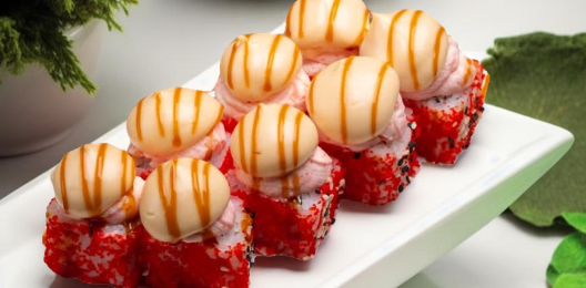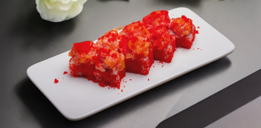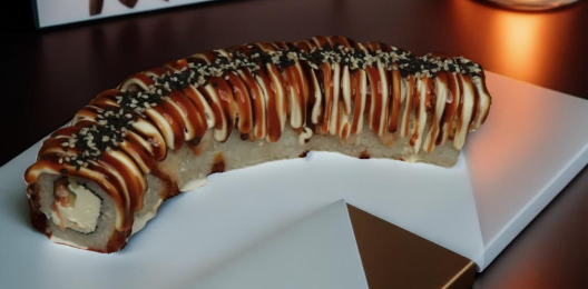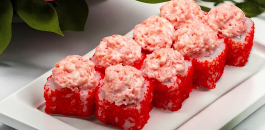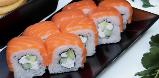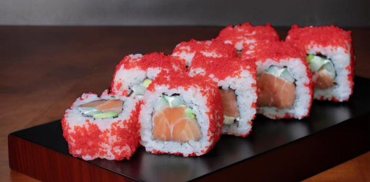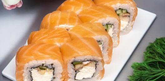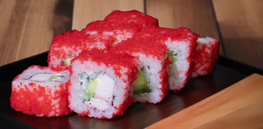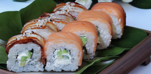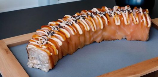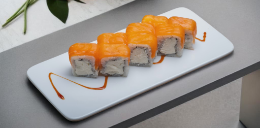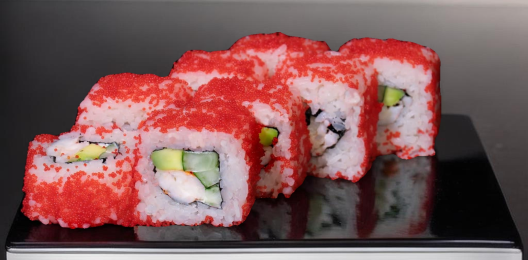 Утонченное сочетание угря, креветок и лосося. Роскошный вкус, достойный гурманов. Состав: рис, нори, авокадо, майонез, креветки, угорь жареный, лосось, икра тобико.